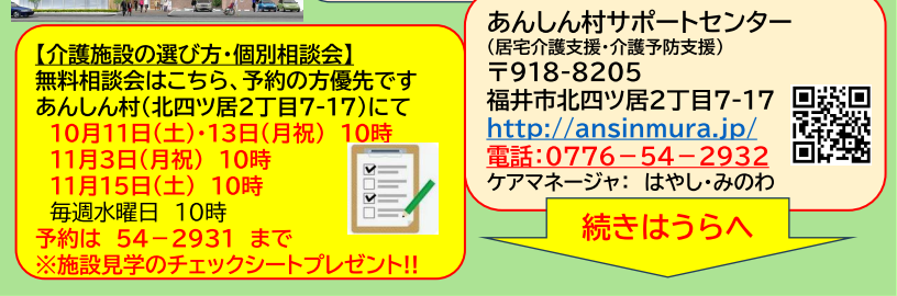 有料老人ホームあんしん村は、このふくい終活の会にも、