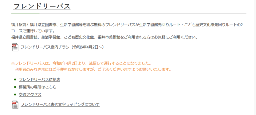 福井駅からは、フレンドリーバスがあり無料で行けます。