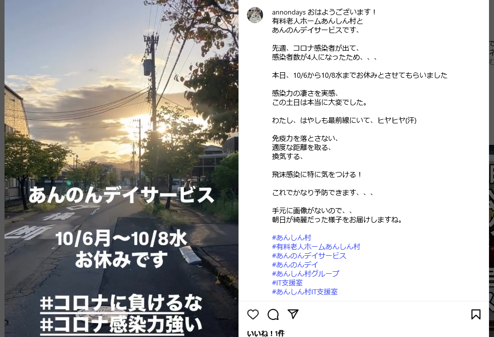 感染者数はなんと4人になり、急遽、デイサービスをお休みすることとしました。