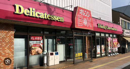 福井のローカルコンビニ、オレンジボックスのオレンジの看板がちらりと映りました。