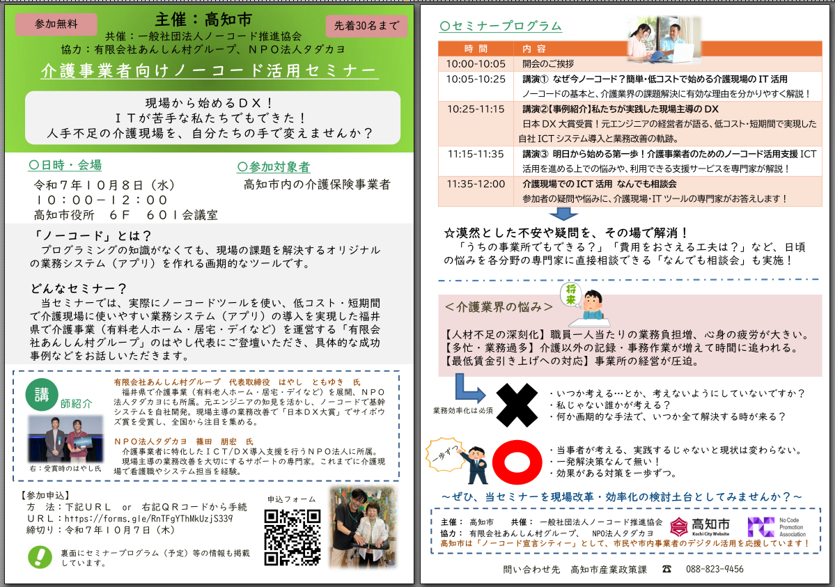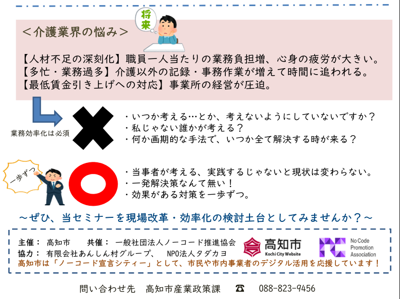 高知市でノーコード宣言シティーを受けるなどして、