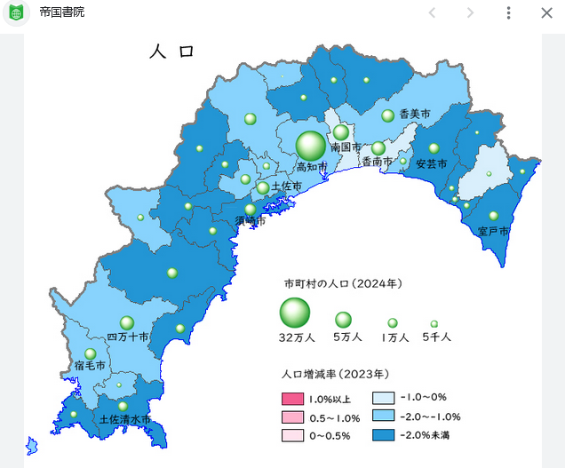 その次が、南国市5万人、四万十市3万人、香南市3万人、香美市3万人と、、、