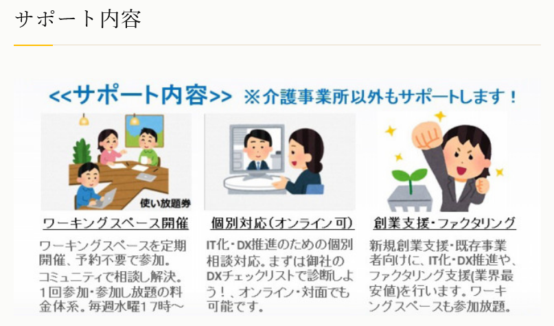 居宅介護支援事業所(ケアマネ事務所)、デイサービス、訪問介護、、、