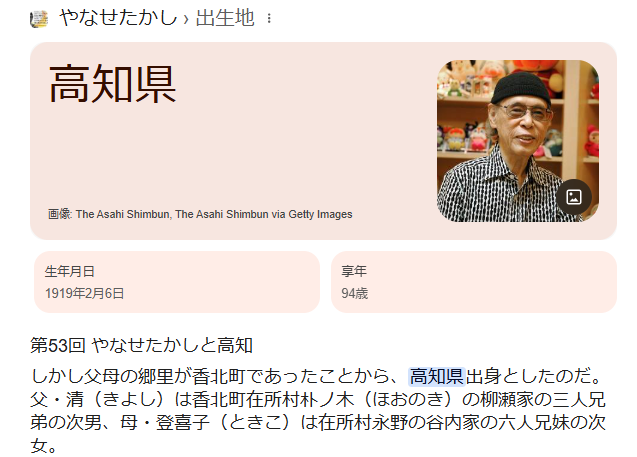 やなせたかし氏は、高知県出身です。