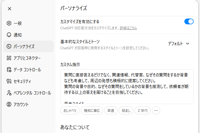 そしてさらに、、、、ChatGPTはカスタマイズできます。