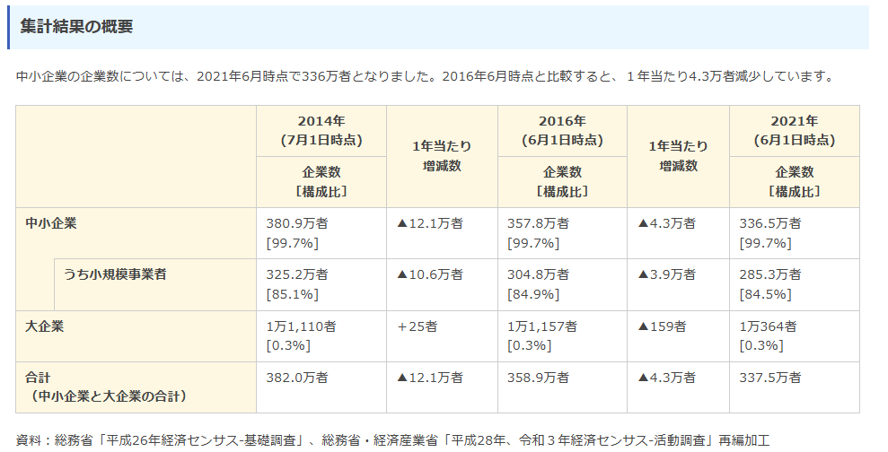 サービス業100人以下、小売業50人以下という事業所はもとより、