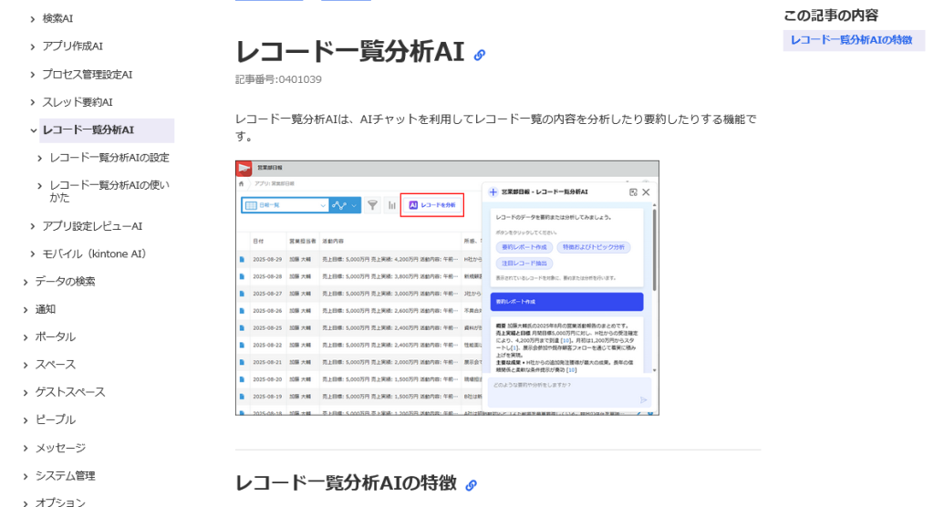 ですから、例えば「レコード一覧分析AI」もしっかりヘルプがあります。