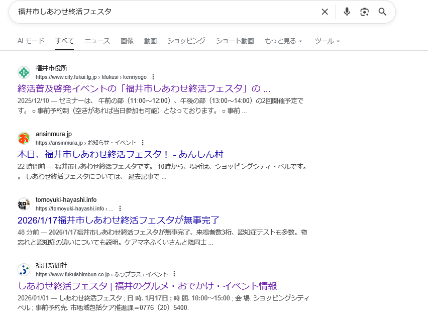 では福井市の別サイトや、終活業者、今回の終活フェスタもヒットします。
