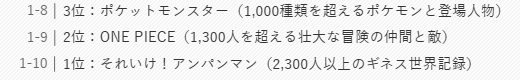 アンパンマン、ONE PIECE、ポケモンでした。