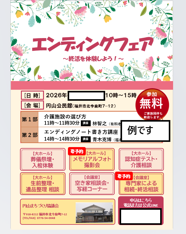 エンディングフェアを、地元円山公民館でも開催出来ないか、