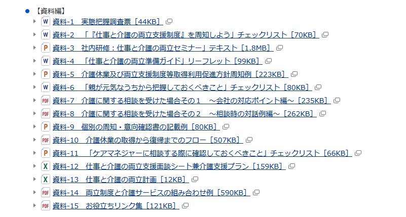 関連資料・動画 →仕事と介護の両立支援 ~両立に向けての具体的ツール~
