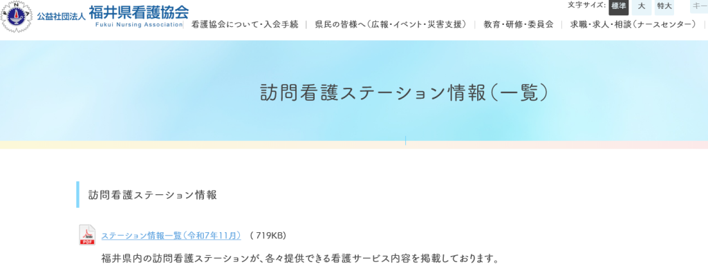 訪問看護ステーション一覧は、福井県看護協会に一覧があるので、、、、