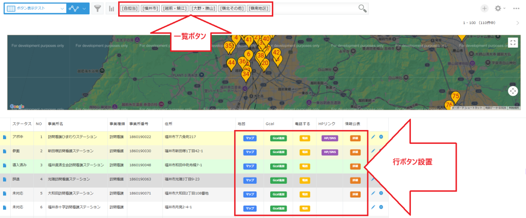 ボタン2、フィールドコード=情報公表URLを元に、情報公表サイトに直接リンクする