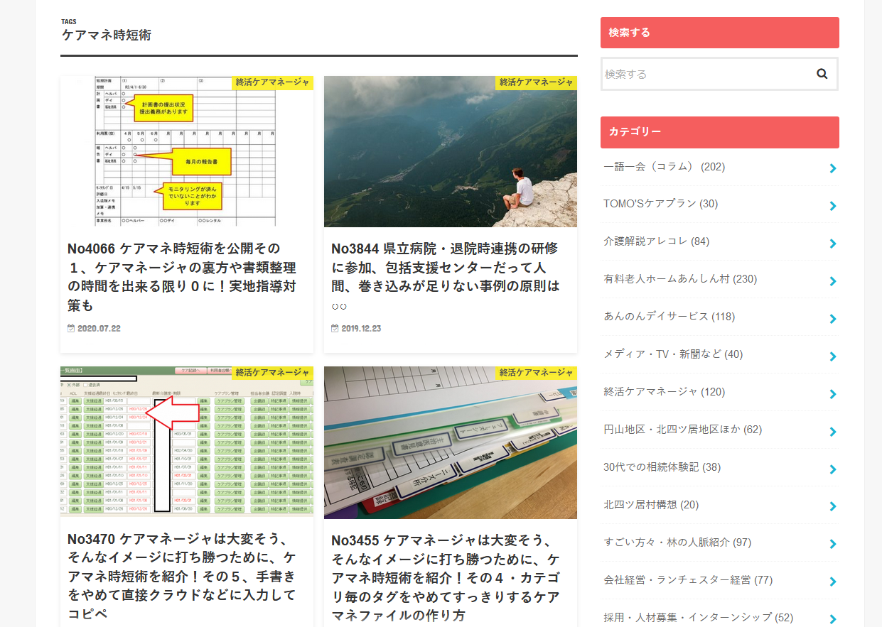 ケアマネ時短術のタグを検索すると色々記事が出てきます