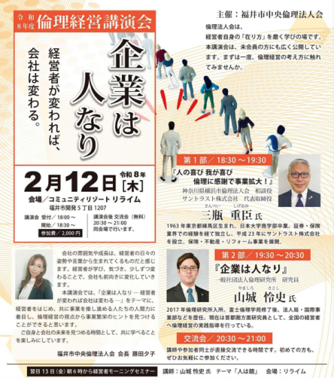 福井県倫理法人会おはようナキウナギ その1,2記事を書きました。 福井市中央倫理法人会の経営者モーニングセミナーにて、講話しました、という記事を書いたのですが、 なんとその1,2を経て、連載記事になっておりました 。 話が続くので面白い...